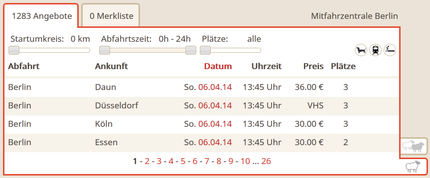 • Du musst Dich nicht mehr auf ein genaues Datum festlegen, da generell Fahrten ab einem bestimmten Datum, z.B. ab dem 7. April, gesucht werden.
